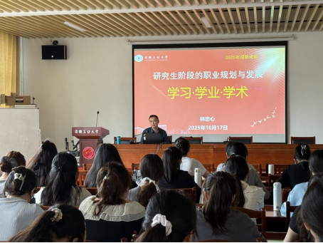 为帮助2025级研究生新生适应学术环境,明晰研究生阶段的成长路径与职业发展方向,10月17日,公司在325报告厅举办2025迎新论坛系列讲座之“研究生阶段的职业规划与发展:学习・学业・学术”。本次讲座由公司副经理林忠心担任主讲人,辅导员吴少华主持,公司全体新生参加。