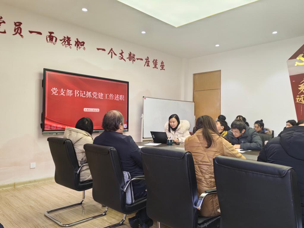 述职采取“一述一评”的形式进行。教工第一党支部、第二党支部、第三党支部、第四党支部及研究生党支部等5个党支部书记分别围绕2023年支部主要工作、存在的问题、下一步工作思路和措施等方面内容用PPT汇报的形式展开述职。徐惠逐一对各党支部书记述职情况进行点评,充分肯定了各党支部取得的成绩,同时也指出了存在的不足和下一步努力的方向。