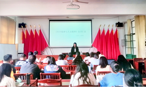 读书报告会上,先后有9位研究生进行了读书心得分享。他们围绕《习近平谈治国理政》第四卷、《思想政治教育团队建设研究》《当代国外社会思潮》《思想政治教育学原理》《科学精神与人文精神》《论共产党员的修养》《习近平讲故事》《哲学通论》《当代思想政治教育若干前沿论域》等书目进行了作品背景、重点内容、读书心得体会等全面而有重点的汇报。例如于艺飞同学重点就《思想政治教育学原理》中的思想政治教育学的环境特征进行了详细阐述,让同学们了解了思想政治教育环境具有复杂性、动态性、特定性和可创性特征,并谈到了自己读书后的感悟,启示我们不仅要读,而且要思考,达到学以致用的效果。冒王磊同学梳理了《论共产党员的修养》的内容,按其围绕的四个核心命题进行了板块的划分,并结合当代实际对共产党员为什么要进行修养分享了自己的思考和理解。朱程程同学由爱智的哲学引入了对“自明性”的分析,带我们品味了黑格尔的七个比喻,启示我们要多读书,通过读书提高我们的思维能力。
