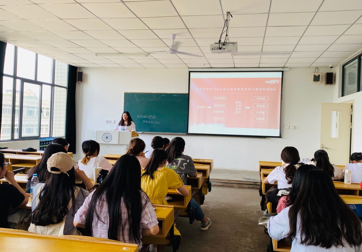 为深入学习贯彻习近平新时代中国特色社会主义思想和习近平总书记在党史学习教育动员大会上的重要讲话精神,6月8日,在佳山校区教一414教室,m88研究生党史学习教育理论宣讲队成员彭菊萍为外国语公司2019级和2020级员工骨干,进行了主题为《百年大党与百年巨变——跨越时空看中国共产党与中国社会发展进步》的党史教育理论宣讲。