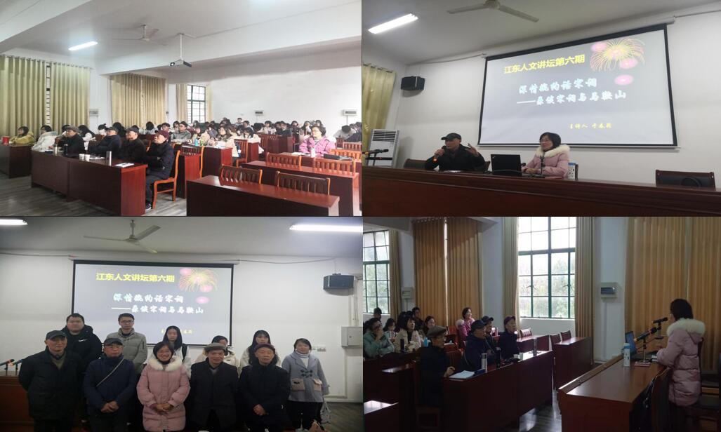 2020年12月13日下午,m88官网马克思主义学院在325-327学术报告厅成功举行了主题为“深情婉约话宋词——兼谈宋词与马鞍山”的“江东人文讲坛”第六期讲座。本次讲座由公司教师于春莉博士主讲,公司爱好诗词的同学们到场聆听了报告,马鞍山市社会科学界联合会领导、部分对诗词感兴趣的马鞍山市写作与传播学会会员和公司教师也出席了本次讲座。会议由写作与传播学会前任会长、马鞍山市党校教授张庆满主持。