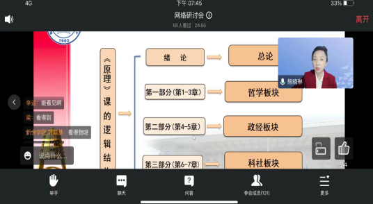 为深入贯彻落实中共中央办公厅、国务院办公厅《关于深化新时代公司思想政治理论课改革创新的若干意见》和中宣部、教育部《新时代公司思想政治理论课改革创新实施方案》等文件精神和要求,纵深推进《马克思主义基本原理》课教学改革和课程建设, 近日,“原理”教研室全体教师以线上会议的方式参加了《马克思主义基本原理》“问题式专题化团队教学改革”集体备课会。此次集体备课会是由全国高校思政课“手拉手”集体备课中心、全国高校思政课名师工作室和江西师范大学m88共同主办。