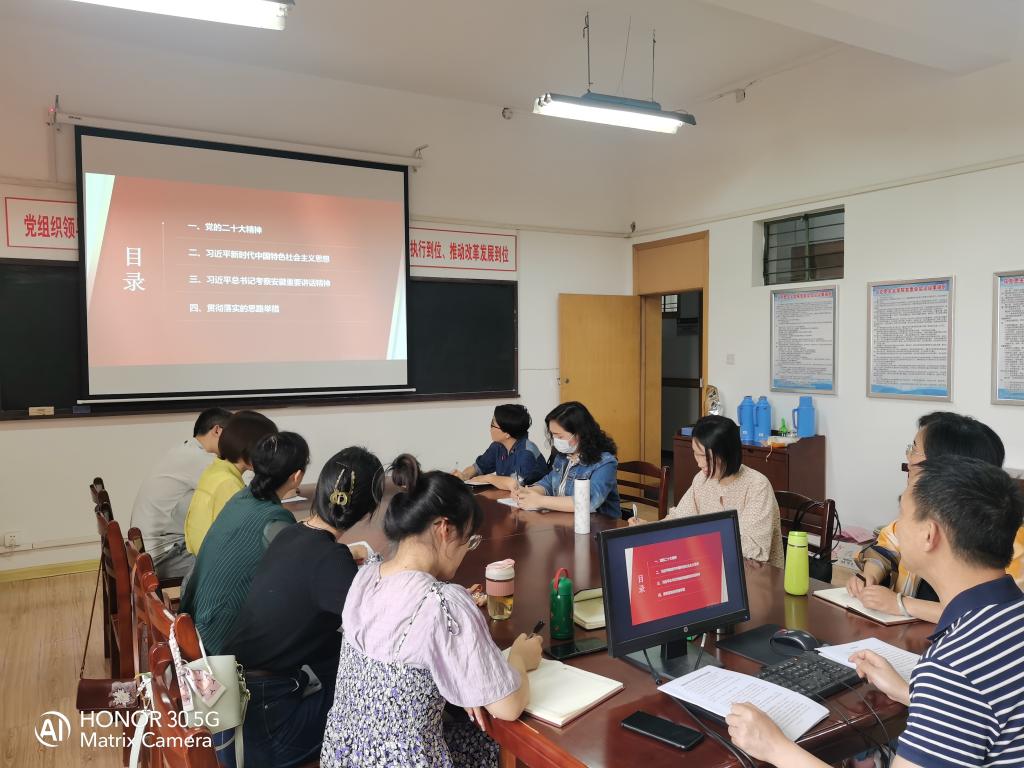 林忠心围绕“学什么”“怎么学”“怎么干”等三个方面,以主要内容、关键词为切入点,结合自身学习体会和思考,带领大家深入学习了党的二十大精神、习近平新时代中国特色社会主义思想、习近平总书记考察安徽重要讲话精神。他指出,要按照主题教育“学思想、强党性、重实践、建新功”的总要求,全面学习领会习近平新时代中国特色社会主义思想的科学体系、核心要义、实践要求,坚持原原本本学,读原著、学原文、悟原理;及时跟进学,真正做到常学常新;融会贯通学,在总结溯源、对照比较中,实现全面透彻的理解把握。要下足功夫往心里走,持续用力往实里走,及时把思想上的所思所悟、所得所获全面落实到公司党建、教学、育人的工作实践当中,不断提高党员教师运用党的创新理论研究新情况、解决新问题的能力和水平。