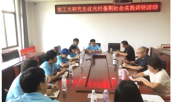 最后,实践队来到红光村。跟随红光村第一书记、驻村工作队队长胡卫东、副队长黄宁辉的脚步,实践队先后参观了红光村瓜蒌种植基地、黄花菜种植基地以及由公司员工企业援建的瓜蒌基地污水处理项目。在实地调研中,实践队不仅了解了红光村瓜蒌籽、黄花菜产业的发展情况、种植技术、产品功效及市场销售情况;也近距离感受了现代技术在助力乡村产业高质量发展中的突出作用。实地调研结束后,实践队与驻村工作队进行了座谈交流。胡卫东向大家介绍了红光村的产业发展、乡村治理、发展前景等情况,并谈到红光村的发展也离不开社会各界人才的支持与帮助,各行各业的人才帮扶为红光村的振兴提供了源头活水和动力引擎。座谈结束后,队员们结合本次实践调研计划与驻村工作队及村干部进行了一对一访谈交流。在调研和访谈过程中,队员们看到了产业、技术、人才在乡村振兴过程中发挥的重要作用,纷纷表示要学好专业知识和现代科学技术,为乡村振兴贡献青春力量。