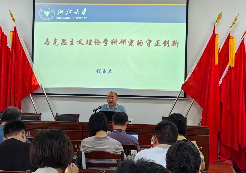 9月8日下午,m88明理讲坛第13期在公司325报告厅举行。浙江大学m88副经理代玉启教授以“马克思主义理论学科研究的守正创新”为主题作学术讲座。讲座由副经理宫晓虹主持,全院师生参加。