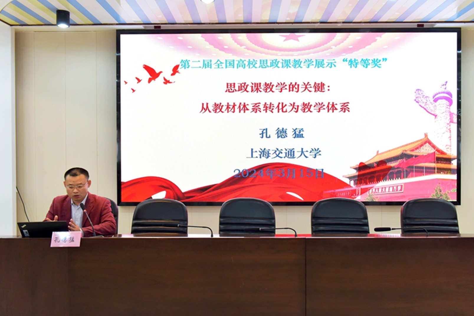 论坛上,全国高校思政课名师工作室负责人、安徽师范大学m88教授路丙辉;全国高校思政课名师工作室负责人、中国矿业大学公司党委书记阎国华;江苏省高校思政课名师工作室负责人、扬州大学m88经理胡立法,教育部高校思政课教指委委员、浙江理工大学红色文化研究院经理渠长根;第二届全国高校思政课教学竞赛“特等奖”获得者、上海交通大学m88教授孔德猛等专家,分别作题为“思政课要教会员工科学的思维”“大思政课的内在涵义与实践进路”“推进思政课大中小一体化:讲好百年党史视角”“努力做有理想敢担当善作为的思政课教师”“思政课教学的关键:从‘教材体系’转化为‘教学体系’”的专家报告。