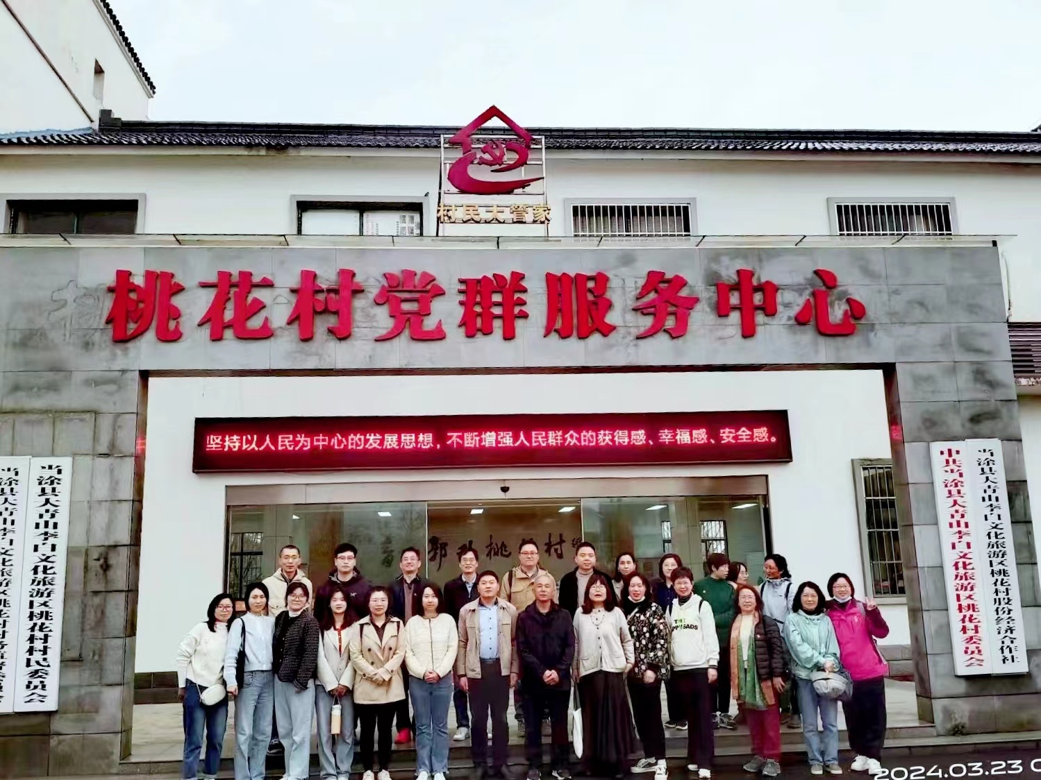 当涂县桃花村不仅是自然风光的胜地,更是乡村振兴的典范。在村主任的引导下,老师们走进桃花村党群服务中心,观看精心制作的桃花村简介视频,对该村的党建工作和乡村振兴成果有了更为全面和深入地了解。随后,又走进桃花村股份经济展示馆,在与村干部的深入交流中,大家对桃花村在党建引领下,持续推动乡村振兴、打造宜居宜业和美乡村的举措表示了由衷地赞叹。