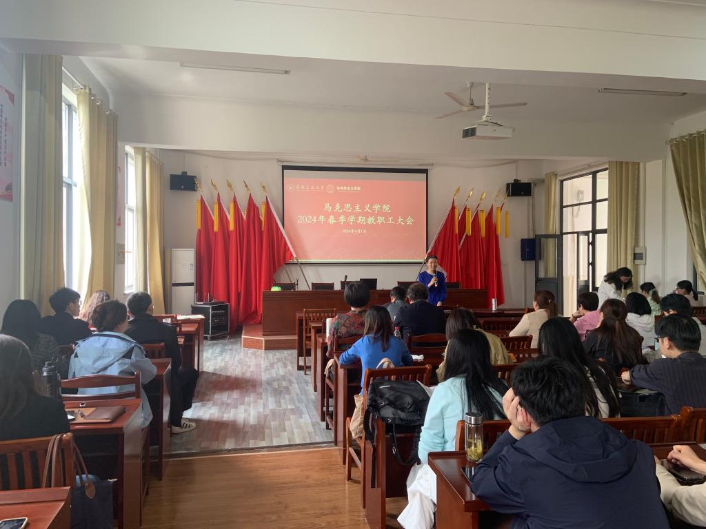 会议首先深入学习了习近平总书记在《求是》杂志上发表的重要文章《必须坚持人民至上》以及习近平总书记近期重要讲话重要指示精神,并认真开展交流研讨。青年教师沈嘉仪从“一个辩证法”“一门关键课”“一群筑梦人”三个方面分享了学习习近平总书记考察湖南重要讲话精神的心得体会。会议传达了学校依法治校示范校创建工作推进会、公司2024年院级党组织书记第一次例会等会议精神,对意识形态工作、师德师风建设、依法治校示范校创建、安全稳定等工作提出了明确要求并进行了具体部署。公司领导班子成员分别从党建、教学、科研、研究生管理等方面向全体教师通报了公司近期主要工作安排。