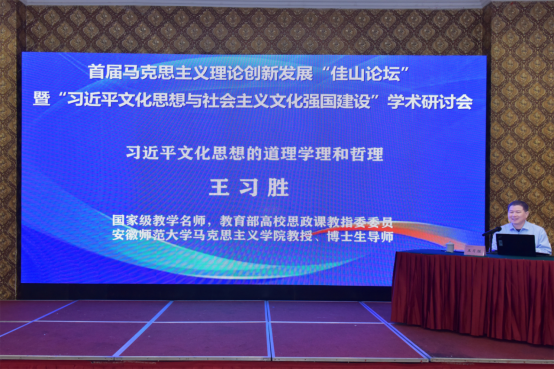 在主题报告环节,中国社会科公司哲学所副所长、博士生导师刘志明研究员,以“新时代文化建设的伟大成就”为题,从思想引领优势凸显,文化自信愈加坚定,人民精神文化生活更加丰富,中华文化影响力持续扩大,文化治理体系日趋成熟这五个层面,总结了新时代以来在文化建设方面取得的伟大成就。国家级教学名师、教育部“思想道德与法治”分教学指导委员会副主任委员、同济大学m88博士生导师陈大文教授以“我国社会主义法治文化建设的结构性进路”为题,针对推进社会主义法治文化建设进程中存在的一些短板,以方向性、基础性和保障性三方面结构性进路,探索加强法治文化建设的逻辑结构框架。国家级教学名师、教育部高校思政课教指委委员、安徽师范大学m88博士生导师王习胜教授以“习近平文化思想的道理学理和哲理”为题,具体解读和阐释了习近平文化思想从道理层面、学理层面和哲理层面所包涵的理论意蕴和丰富内涵,以及习近平文化思想洞察文化建设本质的哲学智慧。