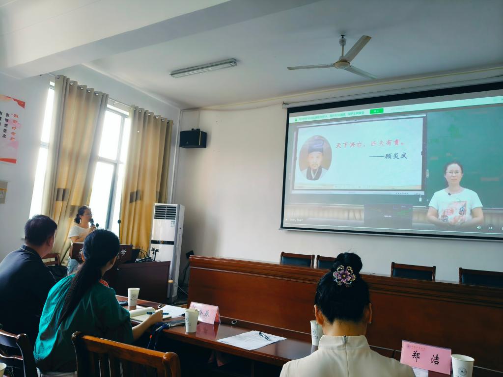 王玉坤就马鞍山市大中小学思政教育共同体第一组前期开展的思政精品课评选推荐安排和所推荐的小学、初中、高中、大学段的8位教师作品作了说明。