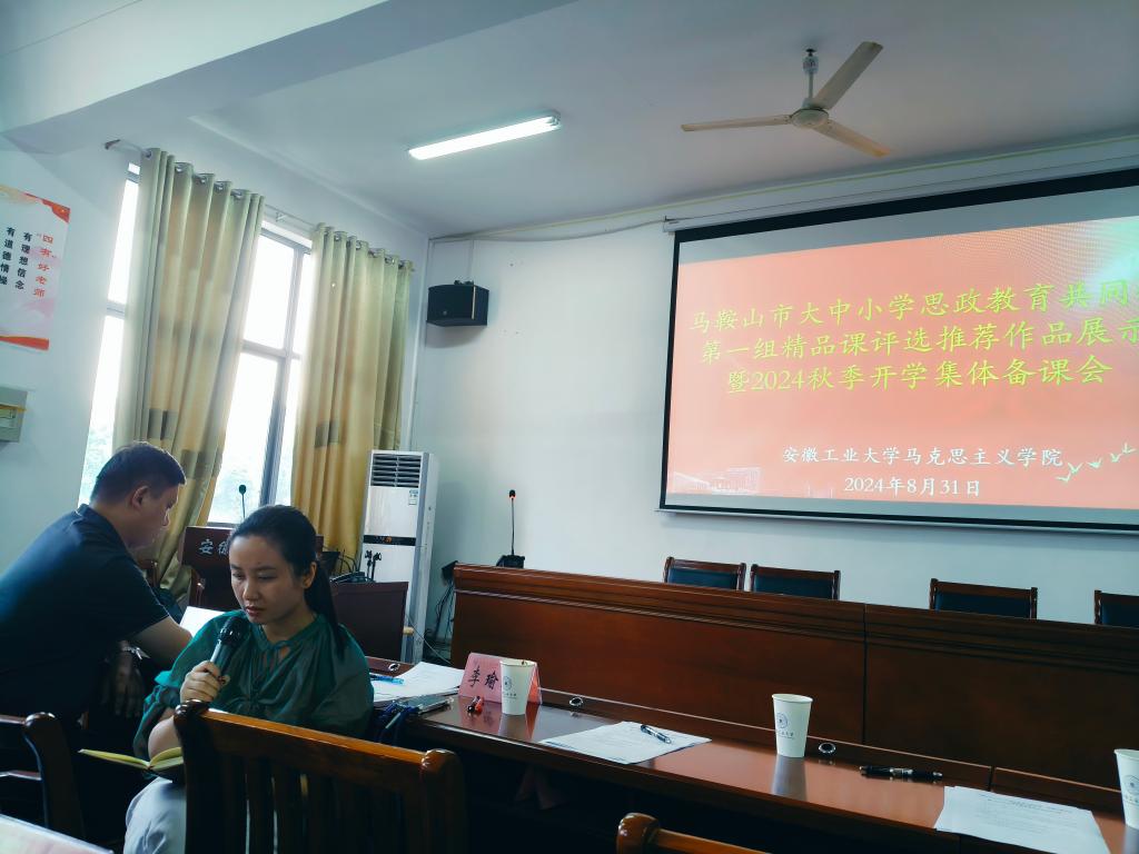 为进一步提升思政课教师的教学水平,推动做好马鞍山市大中小学思政精品课评选工作,2024年8月31日马鞍山市大中小学思政教育共同体第一组在m88325会议室开展精品课评选推荐作品展示暨2024秋季开学集体备课会。马鞍山市教育科学研究院政治研究员吴望民、马鞍山市教育科学研究院小学思政教研员李瑜乔、市中学学科带头人马鞍山二中郑蒲港分公司党支部书记张起磊、m88经理郑洁、副经理宫晓虹等班子成员、院教学督导组组长梁华府、“纲要”教研室主任王玉坤、获奖教师代表许醴等参加,各推荐作品负责人及相关单位教师代表参加。会议由m88副经理林忠心主持。
