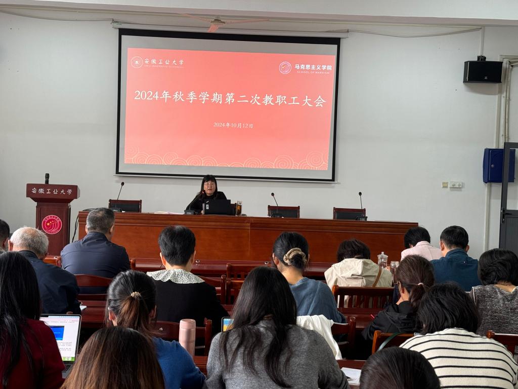 10月12日上午,m88在公司楼325学术报告厅召开2024年秋季学期第二次教职工大会,会议由公司党委书记徐惠主持,公司全体教职工参会。