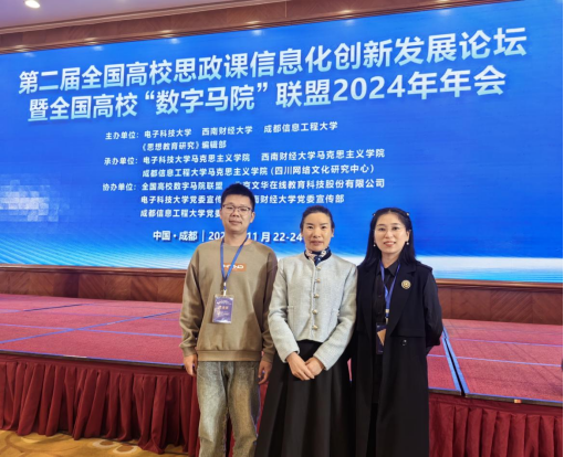 2024年11月23日至24日,第二届全国高校思政课信息化创新发展论坛暨全国高校“数字马院”联盟2024年年会在成都举行。本次年会由电子科技大学、西南财经大学、成都信息工程大学、《思想教育研究》编辑部联合主办。来自全国200余所高校的专家学者汇聚一堂,共话数字马院建设,探讨信息化时代的思政课创新发展。m88经理郑洁、青年教师许醴和沈先陈受邀参会。