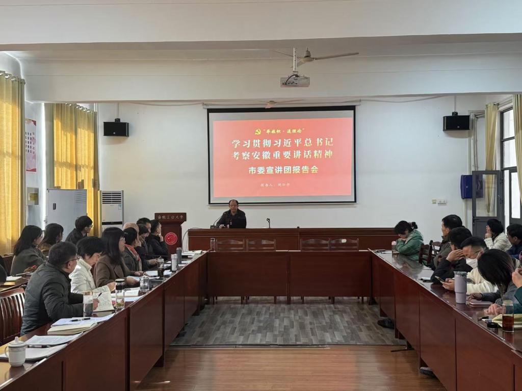 为深入学习宣传贯彻习近平总书记考察安徽重要讲话精神,11月28日,m88在公司325报告厅举办学习贯彻习近平总书记考察安徽重要讲话精神宣讲报告会,市委讲师团倪松根老师应邀作宣讲报告。会议由公司党委书记徐惠主持,公司全体教职工出席了会议。