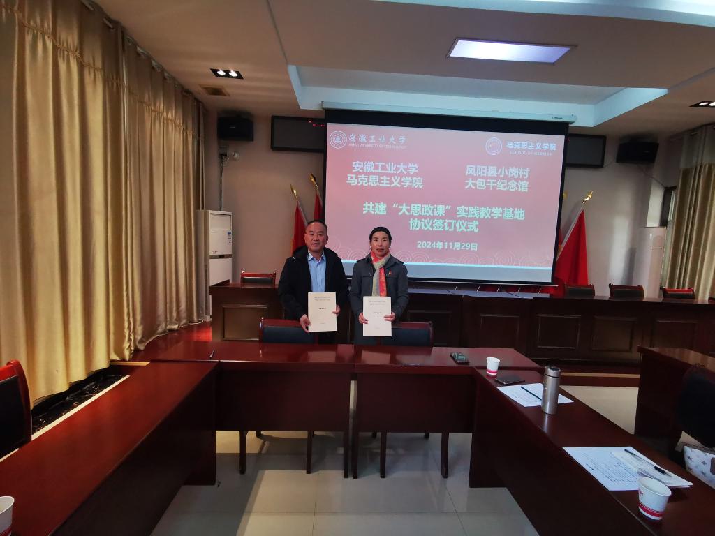 为深入贯彻落实党的二十届三中全会精神、习近平总书记关于“大思政课”建设的重要指示精神和教育部“大思政课”结对共建活动的指示要求,11月29日,m88与凤阳县小岗村大包干纪念馆,在小岗村召开构建“大思政课”实践育人新模式教学交流会,并就共建“大思政课”实践教学基地举行签约仪式。小岗村党委委员吕计跃,村党委委员、办公室主任贾贵,村旅投公司董事长杨永强等参加,m88经理郑洁、院工会主席毕圣海,“概论”教研室主任阮超群、党支部书记周玉英等参加。会议由党的二十大代表、小岗村党委书记、村委会主任周群之主持。