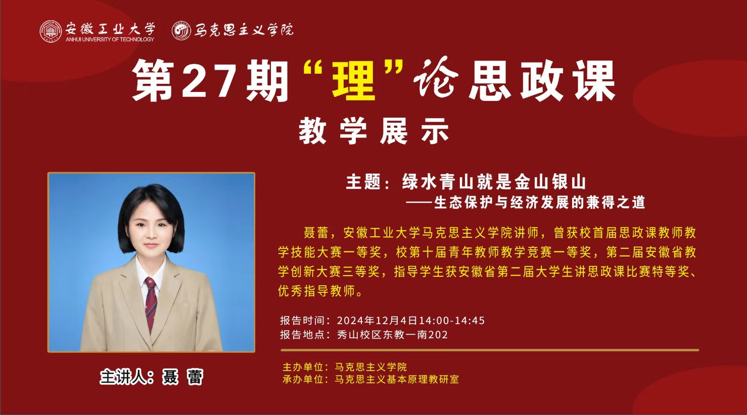 本次教学观摩首先由“原理”教研室聂蕾老师展示,她展示的主题是“绿水青山就是金山银山——生态保护与经济发展的兼得之道”。她以马克思主义基本原理科学社会主义部分——科学社会主义基本原则之要合乎自然规律地改造和利用自然,努力实现人与自然的和谐共生这一原理为切入点,以跨省流域生态保护补偿的“新安江模式”为主线,探究“生态保护与经济发展”能否兼得?为何兼得?如何兼得?剖析生态保护与经济发展之间关系,进而引导员工们深刻理解生态与经济兼顾是中国新发展逻辑。作为中国式现代化的推进力量,新时代青年必须牢固树立绿水青山就是金山银山的理念,共担生态文明使命,共建美丽富强中国。