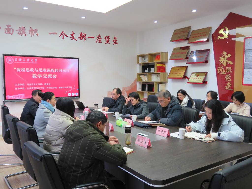 为深入推进思政课程与课程思政深度融合,科学把握思政课程与课程思政公司产品相统一的基本要求,12月12日下午,由m88、教务处主办,公共管理与法公司、外国语公司、能源与环境公司协办的“课程思政与思政课程同向同行”教学交流会在m88324会议室举行。教务处、公共管理与法公司、外国语公司、能源与环境公司、m88等相关负责人和教师代表参加。会议由m88副经理林忠心主持。