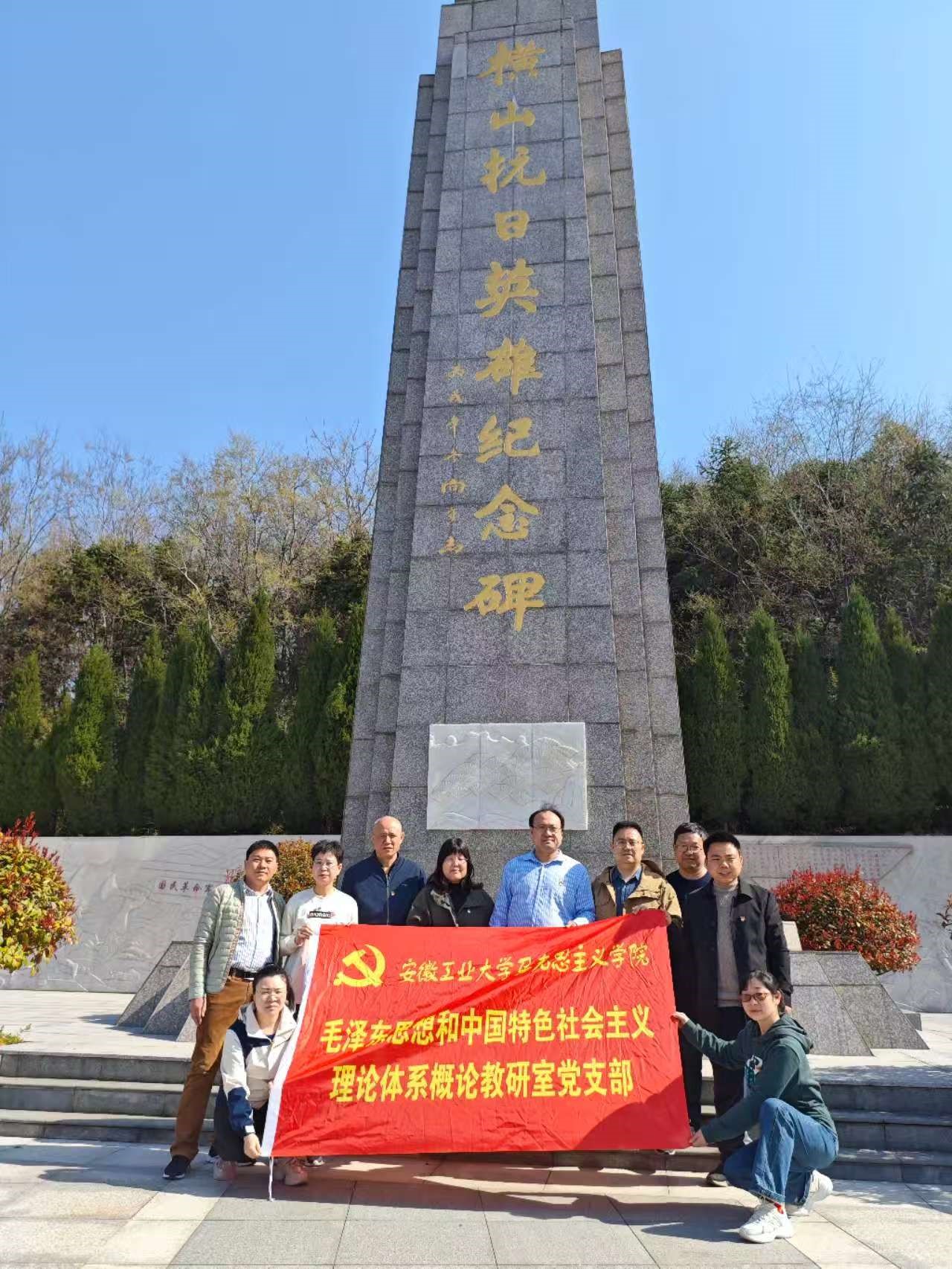 为深化党史学习教育,充分利用大思政资源,赓续革命传统,传承红色基因,激励教师党员凝聚奋进力量,3月22日,m88毛泽东思想和中国特色社会主义理论体系概论教研室党支部赴马鞍山市博望区横山抗日英雄纪念碑,开展“缅怀革命先烈 传承红色基因”主题党日活动。