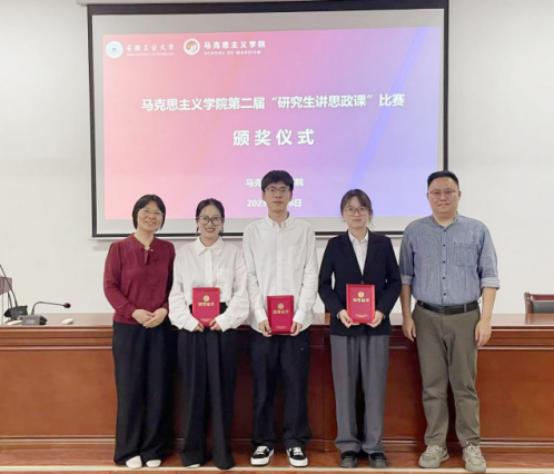 最后,陆春晖老师对此次比赛进行了点评,他指出,此次比赛对于马院研究生以青年视角解读党的创新理论、展现马院员工的学术素养、增强讲课能力、积累教学经验具有十分重要的理论意义和实践价值。各位选手选题聚焦重难点,PPT 内容详实丰富,讲解自信有风采,课堂氛围热烈而活跃。同时,对同学们提出了四点建议:一是思政课选题应避免宽泛宏大,需聚焦具体、有针对性的主题,以确保教学内容的深度与实效性。二是要把握思政课的教学节奏,结合课程特点融入现实案例。三是应当积极营造互动氛围,通过精心设计问题、组织小组讨论等多样化的互动形式,引导员工主动参与到课堂交流中来。四是在讲授思政课时,需精准把握台风,清晰区分授课与理论宣讲的不同风格呈现,以生动自然的表达增强课堂感染力。