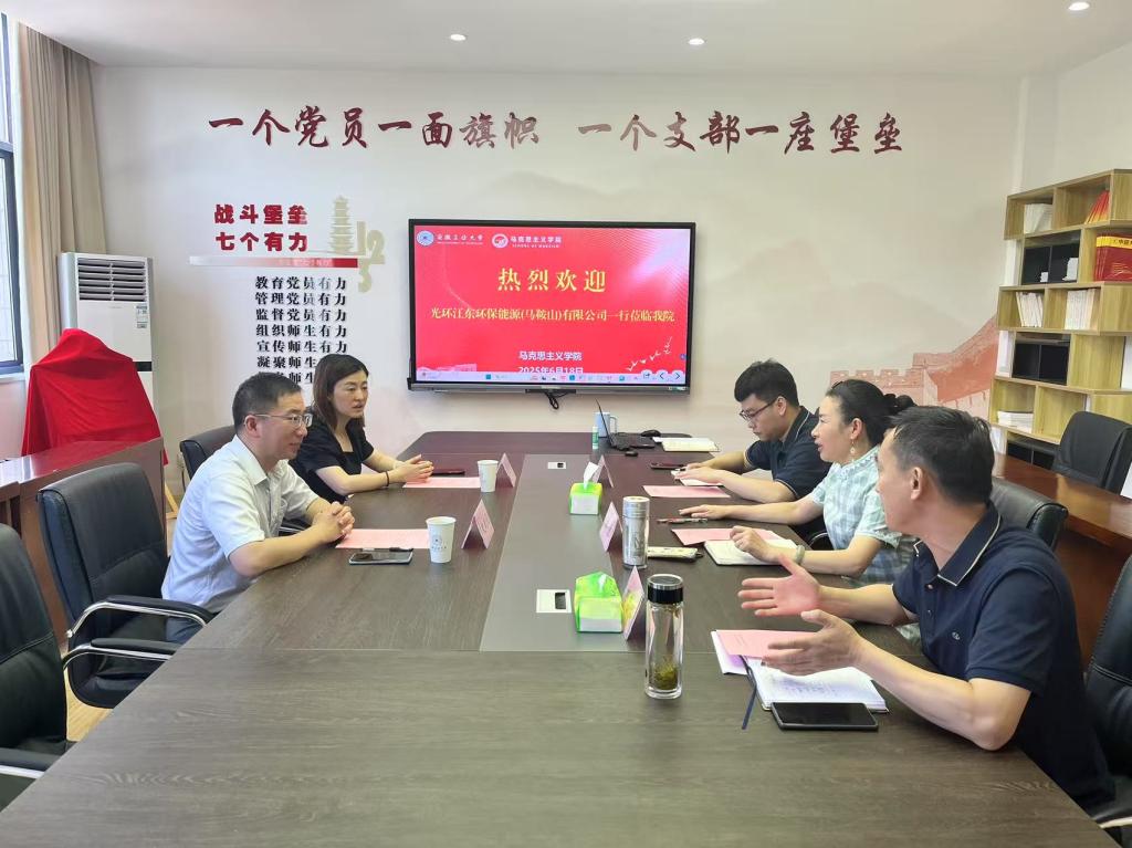 为积极推动“大思政课”建设,进一步探索思政小课堂与社会大课堂相结合方式与路径,不断丰富思政课教学内容。6月18日,公司与光环江东环保能源(马鞍山)有限公司举行教育部、生态环境部美丽中国专题“大思政课”实践教学基地建设交流会,并举行授牌仪式。光环江东环保能源(马鞍山)有限公司总经理助理史武元、综合部经理李卉,m88经理郑洁、副经理林忠心、“思政课社会实践”教研室主任邱浩等参加会议。副经理林忠心主持会议。