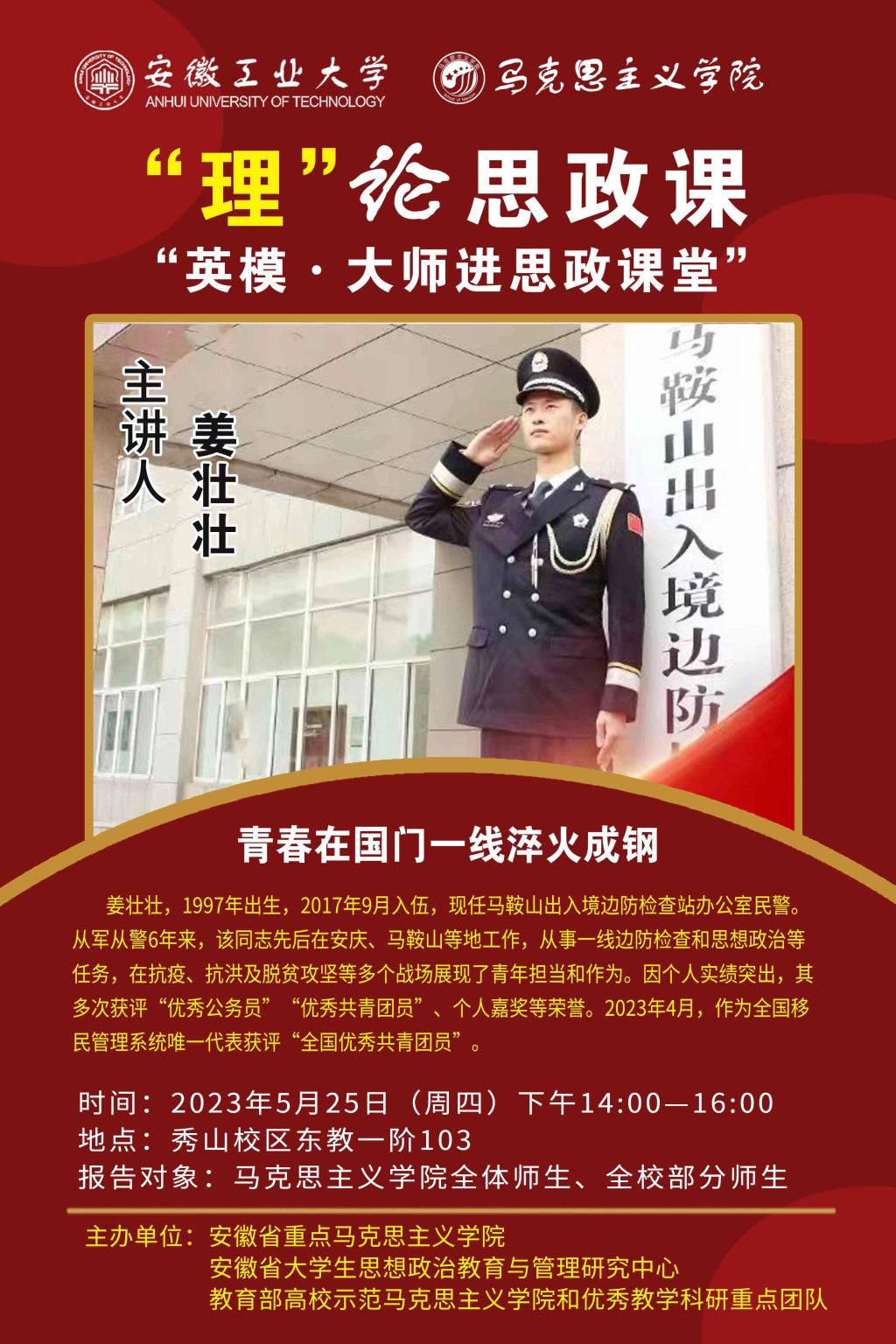 姜壮壮,1997年出生,2017年9月入伍,现任马鞍山出入境边防检查站办公室民警。